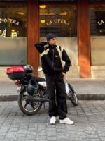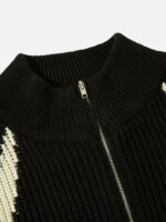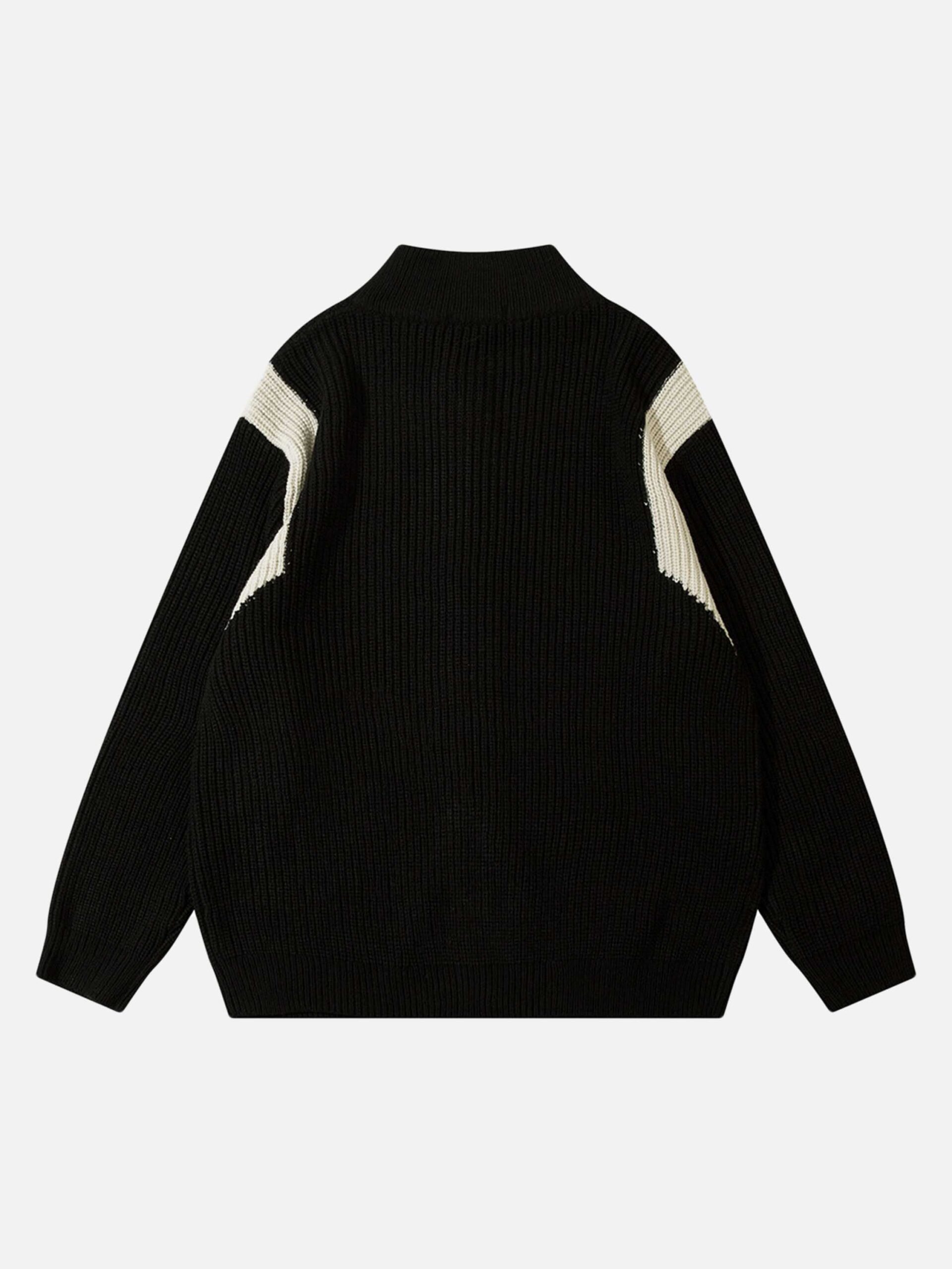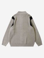 American Style Color Blocking Zipper Cardigan Sweater Loose Knit-1509