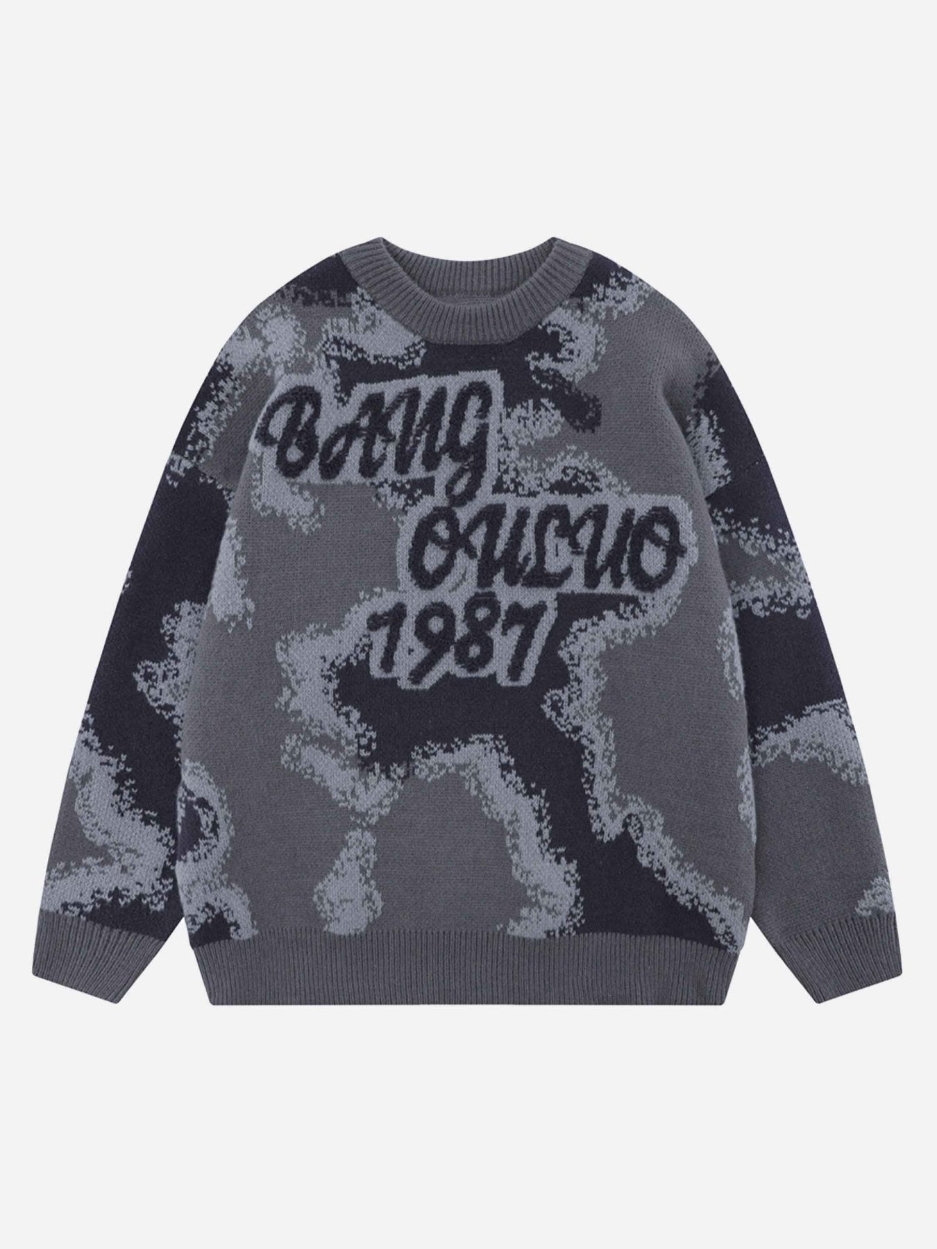 Camouflage Peplum Crew Neck Knit