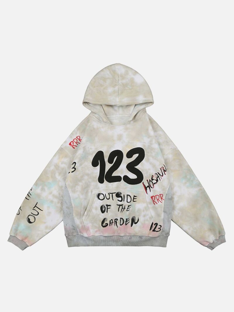 Heavy Wash Vintage Digital Print Hooded Sweatshirt