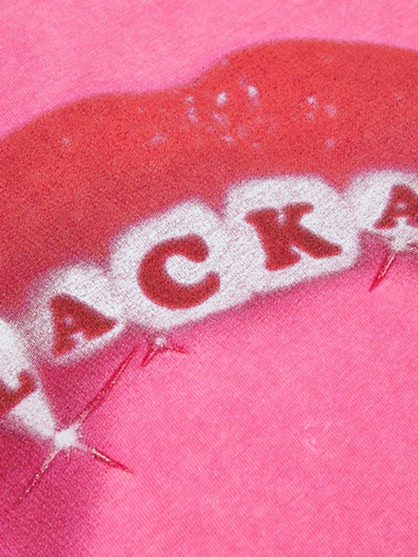 Hip Hop Mouth Printed Washed Out T-shirt