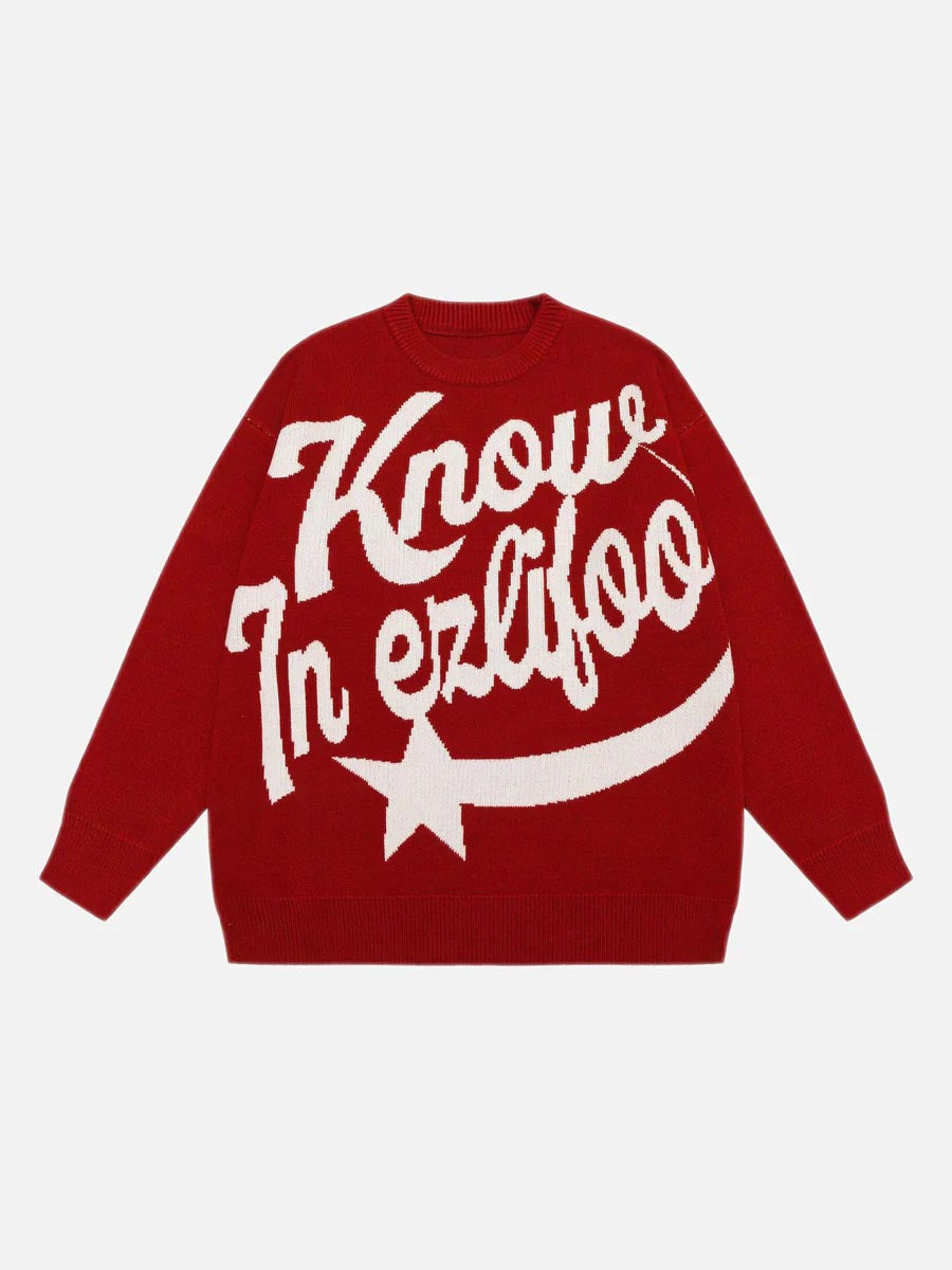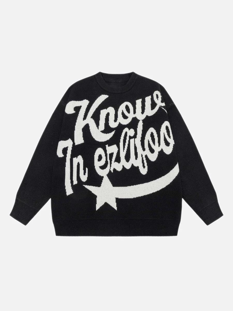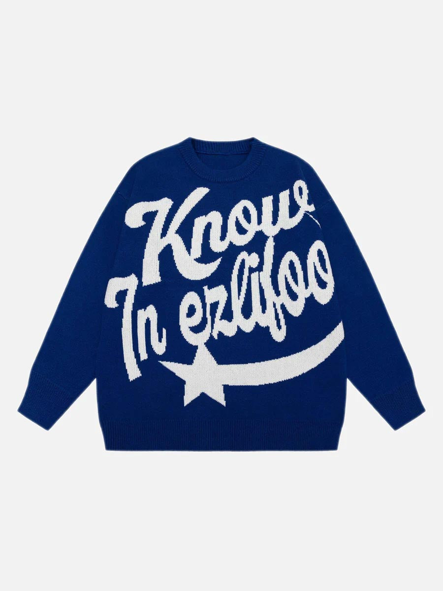 Letter Print Knitted Sweater -1414