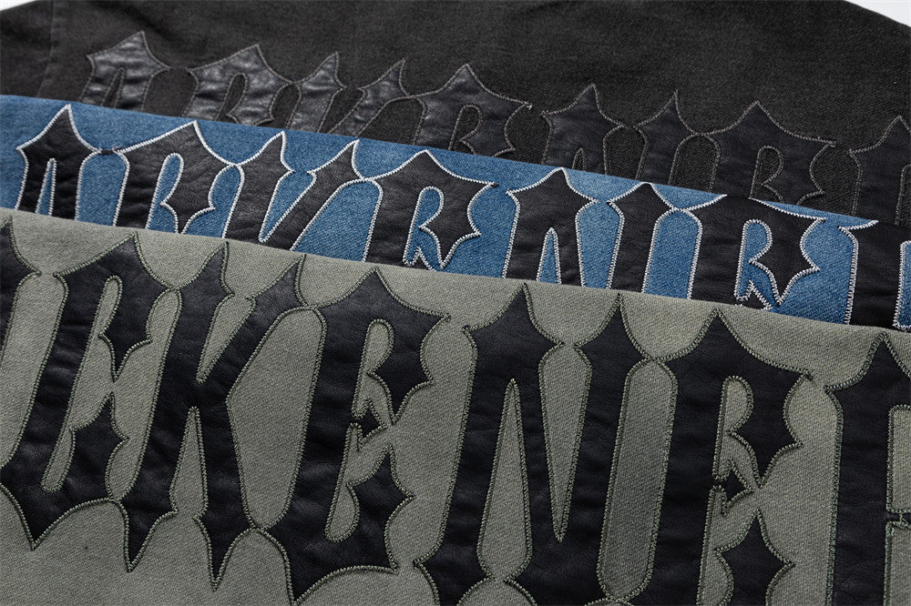 Tie-dye Gradient Letter Embroidery T-shirt – 1542